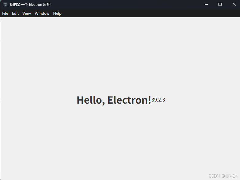 你会看到一个窗口弹出,显示 "Hello, Electron!" 以及各组件的版本号!