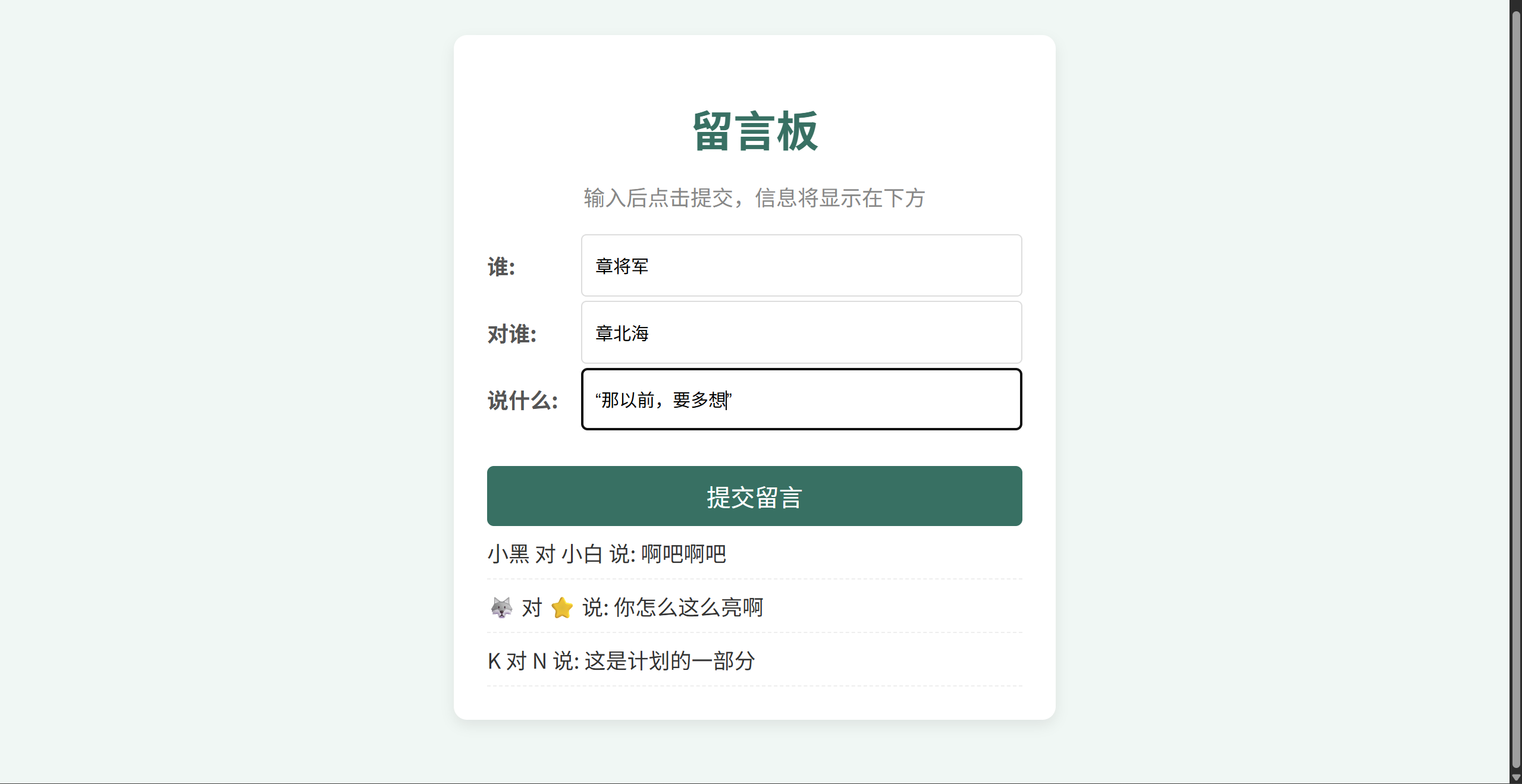<span>说什么:</span> <input type="text" id="say" placeholder="你的留言内容">