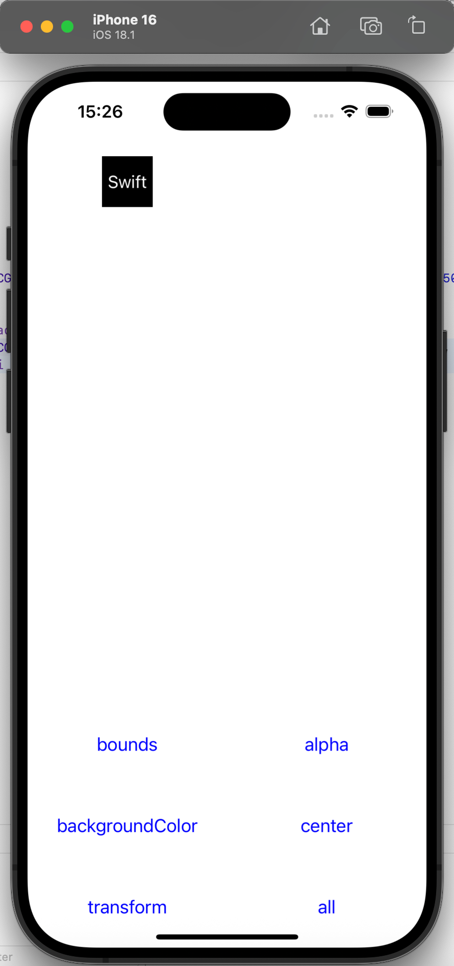 frame/bounds/center/alpha/backgroundColor/transform),tag/isHidden等属性不支持动画; - 弹簧参数 :