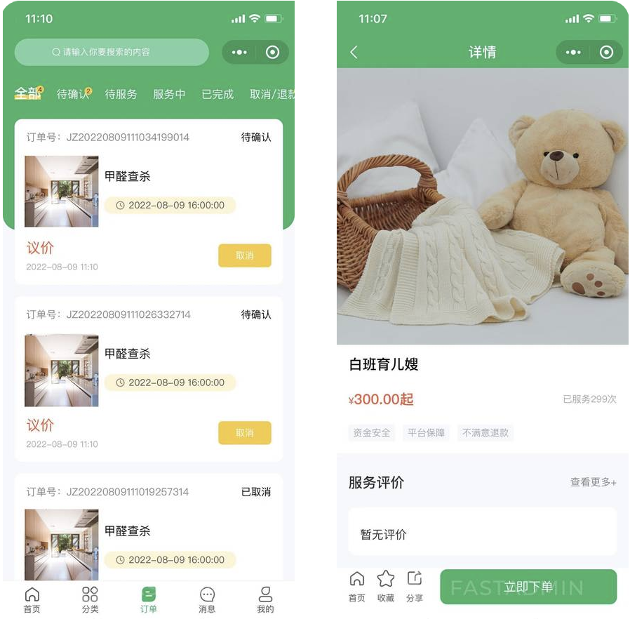海量服务,一键下单 :系统提供包括白班育儿嫂、甲醛查杀、月嫂、家电维修等在内的多种家政服务。每种服务都明码标价,并清晰展示已服务次数,帮助用户做出最佳选择。一键"立即下单",省去中间所有繁琐环节。