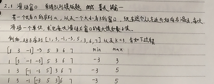1. 题目一:【单调队列模板题】滑动窗口