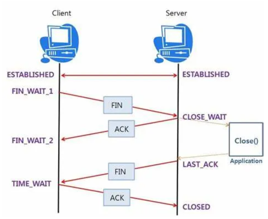 - 第二次挥手:接收方收到FIN包后,发送一个ACK包确认。