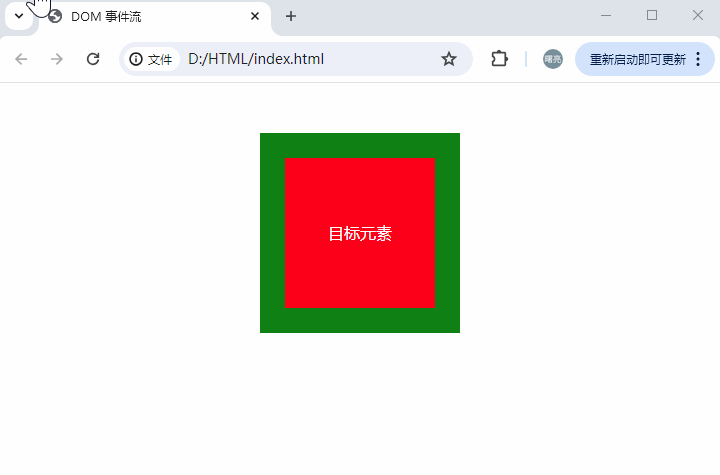 - 目标阶段 ( Target Phase ) : 事件到达 并 触发在目标元素本身 ;