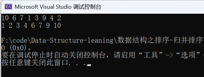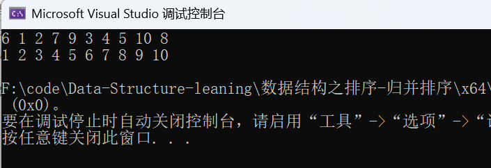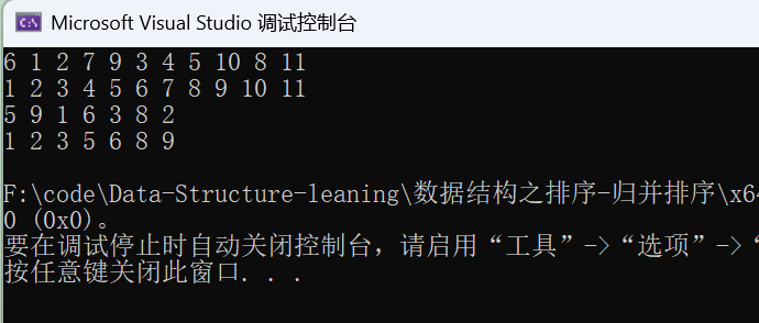 _MergeSort(arr, tmp, 0, n - 1); //排序用子函数进行操作,目的:避免多次创建数组