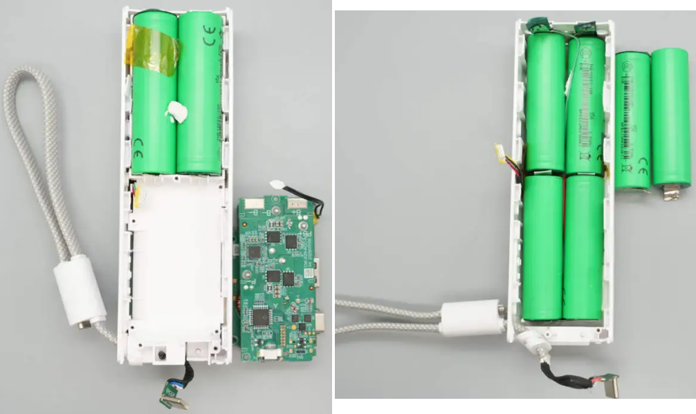 电芯共有6节,电路板下面有两节。自带线内部焊接一个typec公头,插到PCB上的typec座子上。