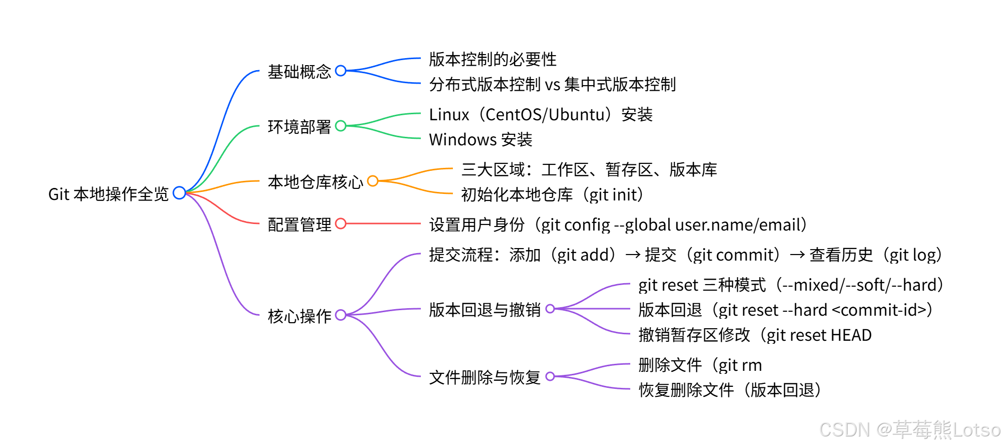 结语:版本回退、撤销修改与文件删除,是Git赋予开发者的"纠错能力",也是保障代码稳定性的核心手段。它们的本质是对"版本历史"的灵活掌控------既能通过 git reset 在版本树中穿梭,也能通过 git checkout 和 git rm 在工作区、暂存区精准修正。掌握这些操作,你将不再因"误操作"而焦虑,反而能把Git的版本管理能力转化为开发效率的"加速器"。后续学习分支管理时,这些操作的思路也将助你更从容地处理多分支间的版本冲突与合并,真正实现对代码版本的全方位掌控。