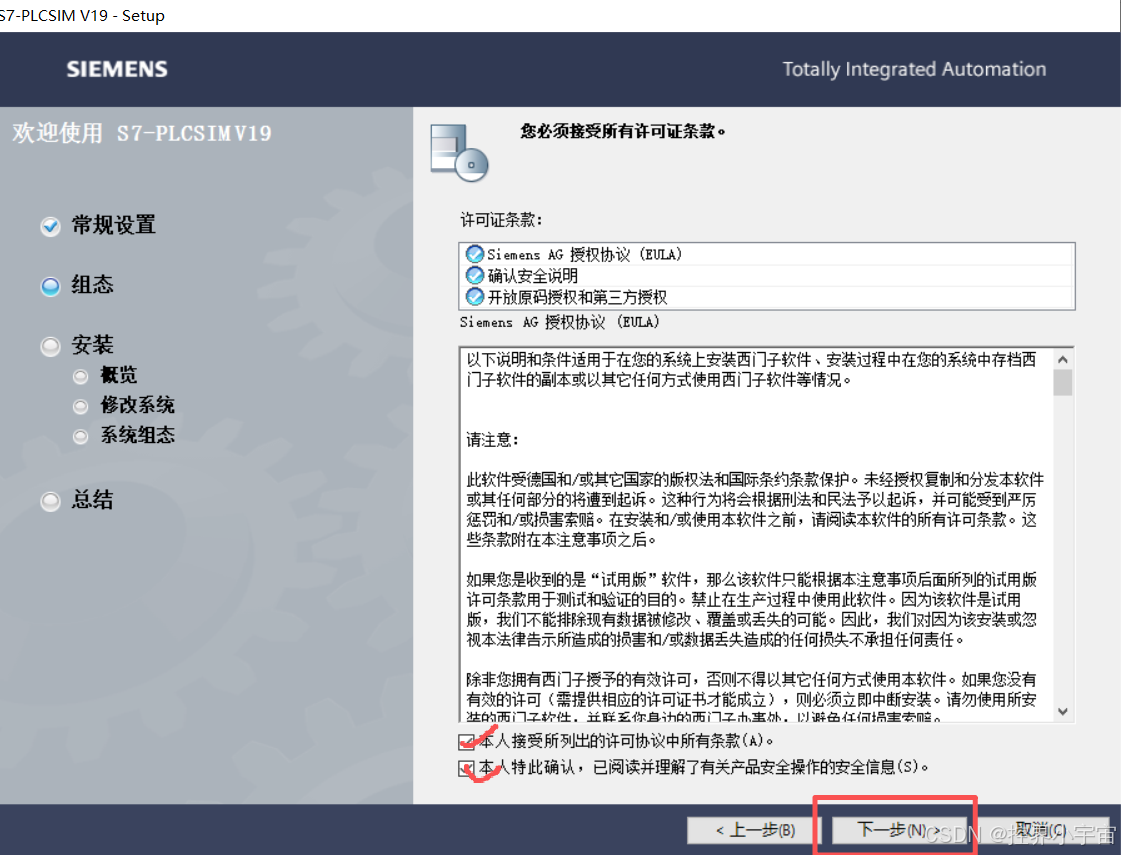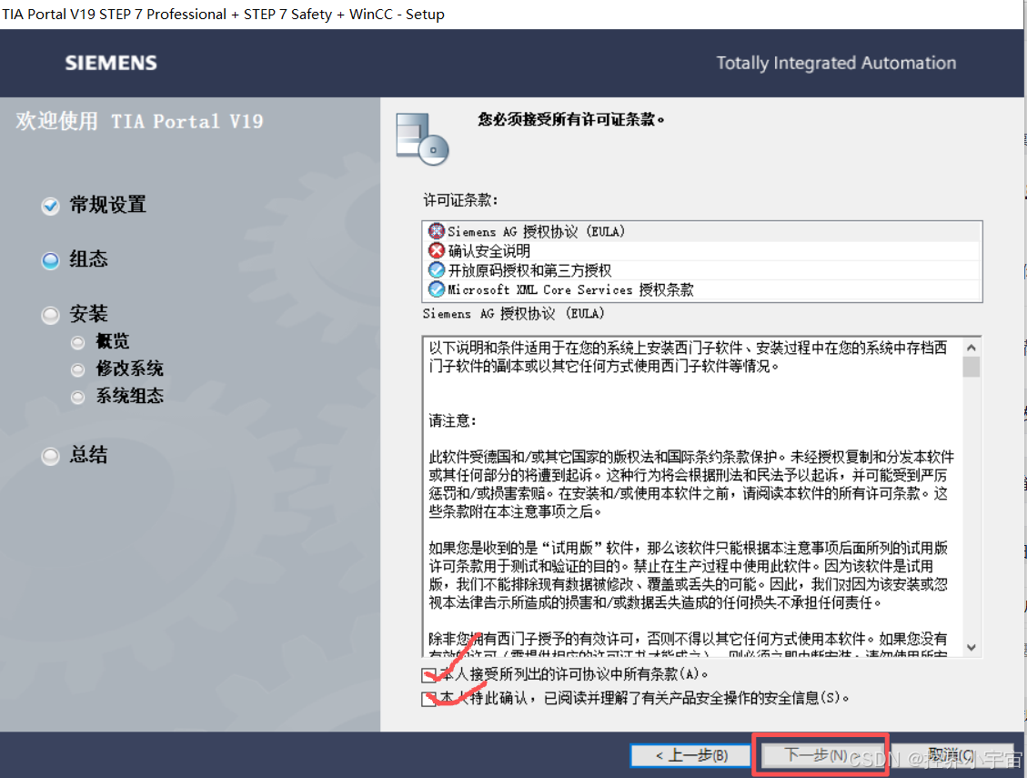 - 勾选「本人接受许可条款和条件」和「本人特此确认已阅读并理解......」,点击「下一步」;