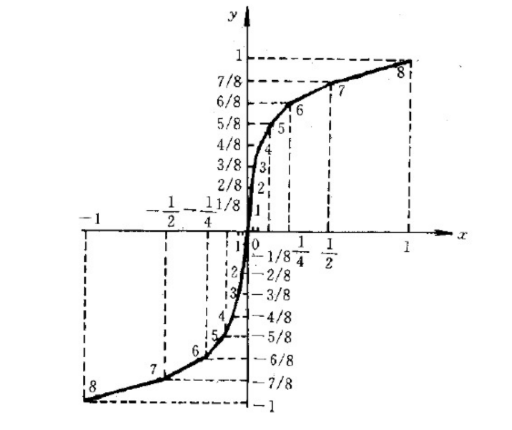 其中PCMA使用13折线近似法来进行压缩,本质是非均匀量化,根据信号的大小采用不同的刻度,小信号更精准。下图的x是归一化的有音频信号。