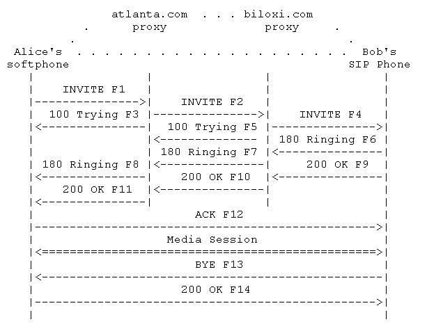 代理服务器用于转发SIP协议报文,如上图客户端发来SIP协议经过代理服务器层层转发,最终到对方UA。