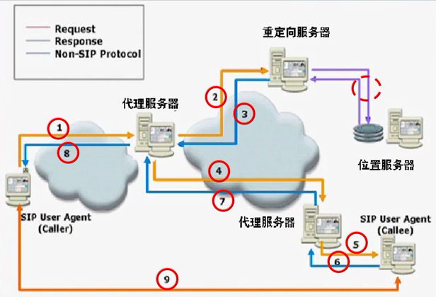 重定向服务器不负责转发请求,只负责定位服务器端当前的地址,代理服务器接收到请求,将DNS域名解析的结果发送给重定向服务器,将定位到的服务器端当前位置返回给客户端代理服务器。和HTTP的重定向服务器一样,SIP重定向也可以起到负载均衡的作用。