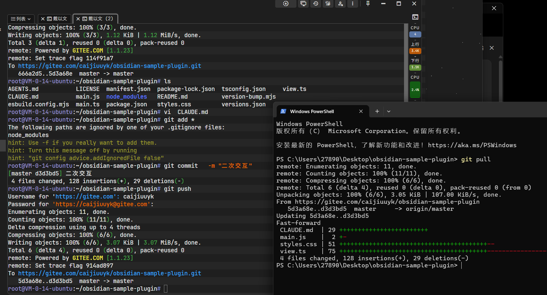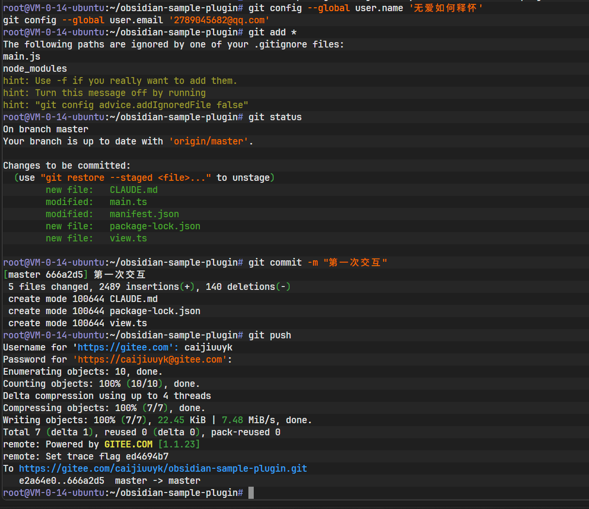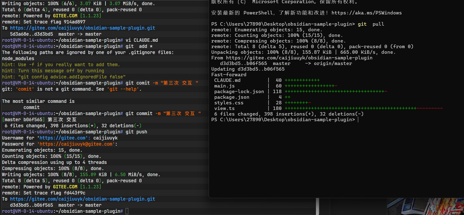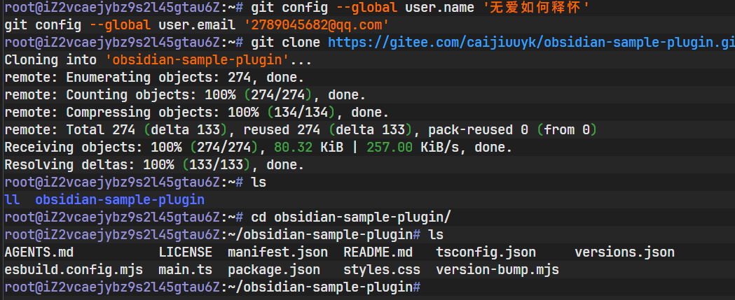 bashgit clone https://gitee.com/caijiuuyk/obsidian-sample-plugin.git
