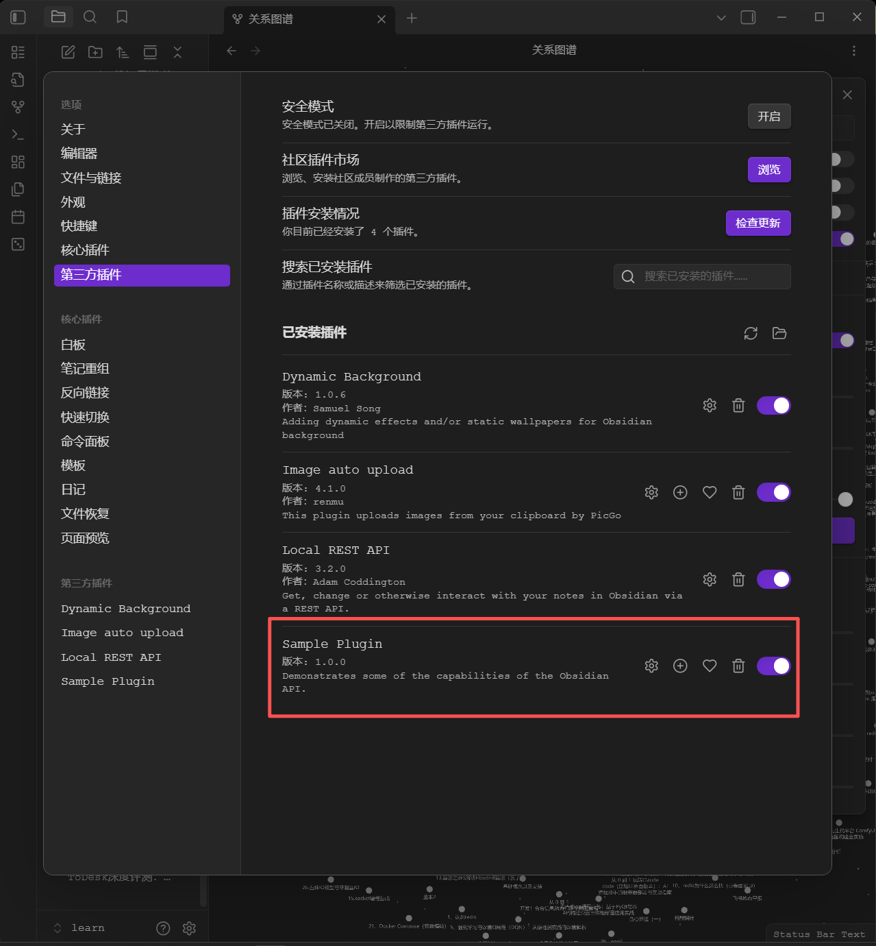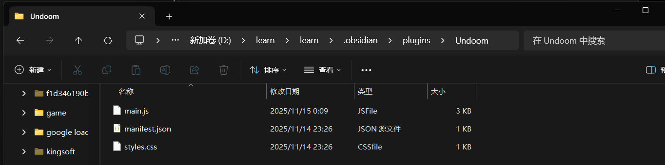 main.js、manifest.json和styles.css复制到Obsidian的插件目录。