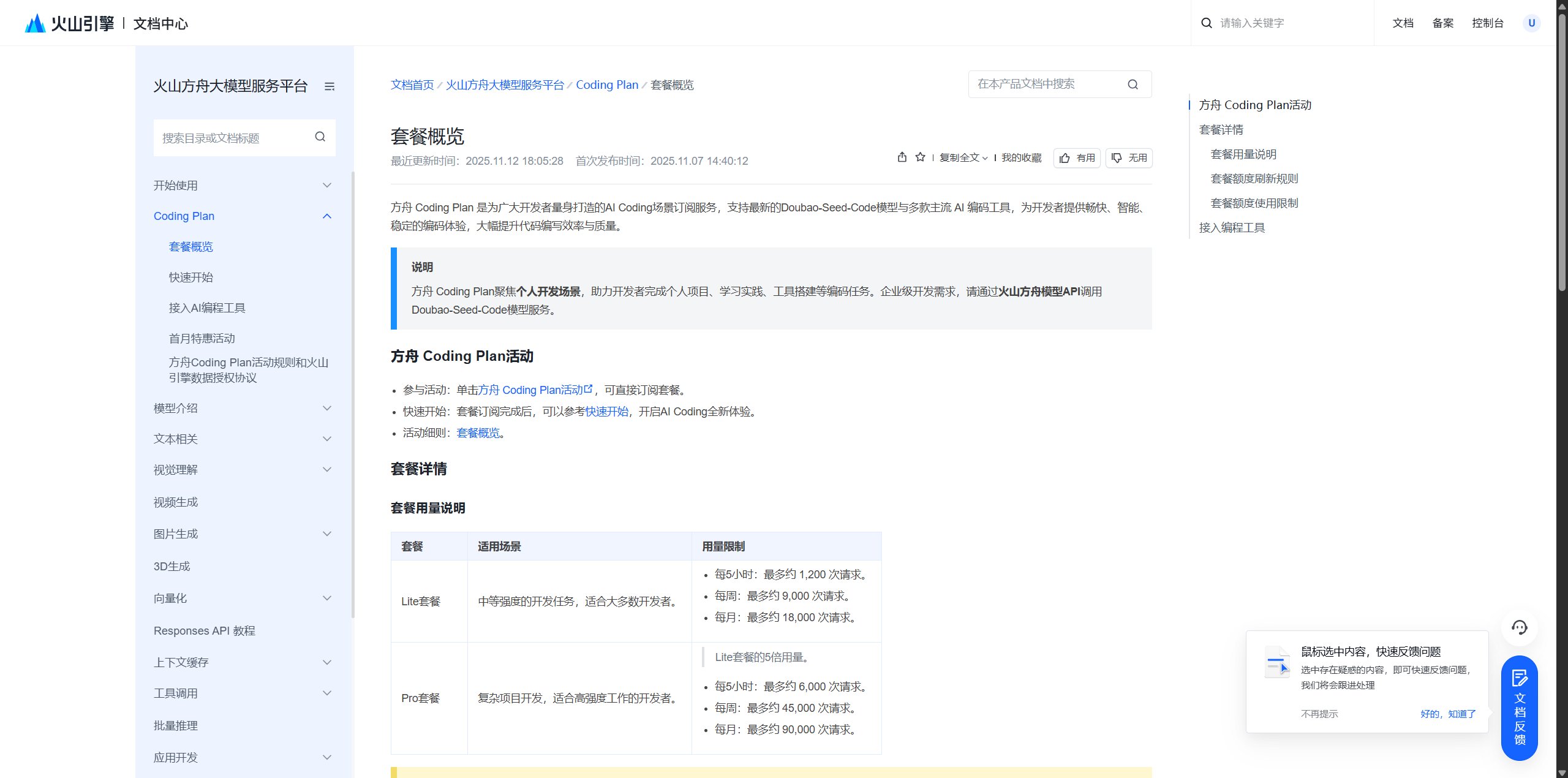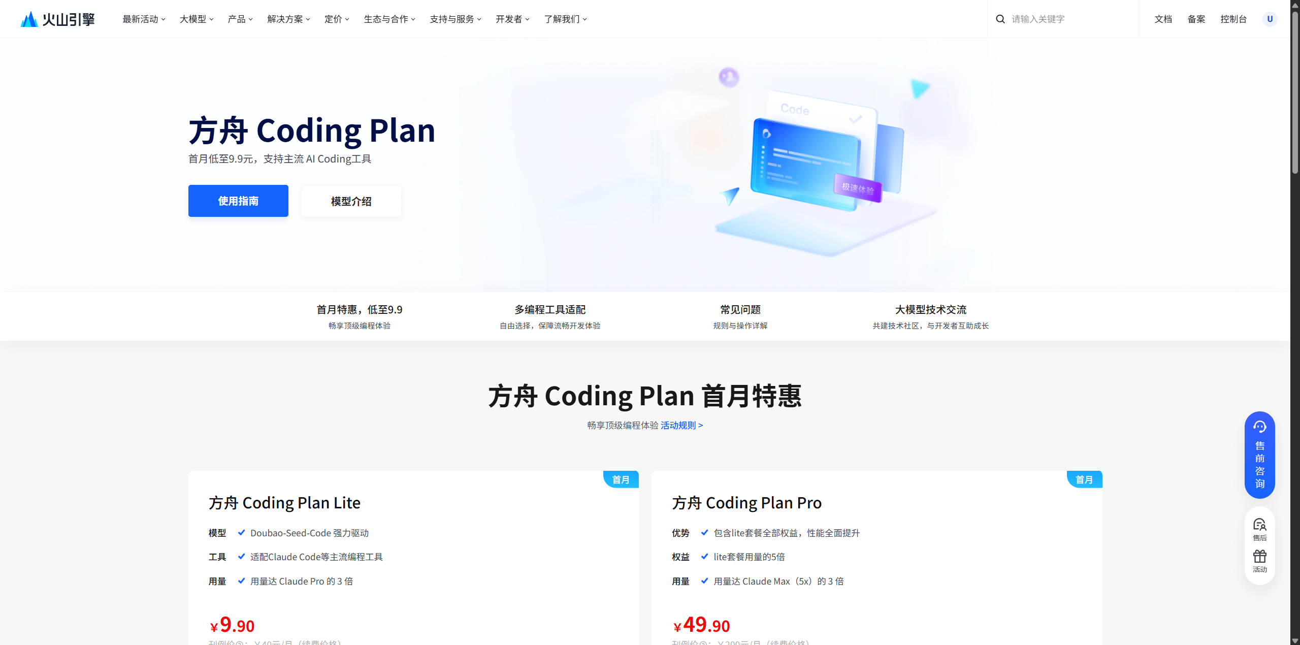 - Coding Plan订阅服务 :为了普惠个人开发者,火山方舟同步推出了Coding Plan。