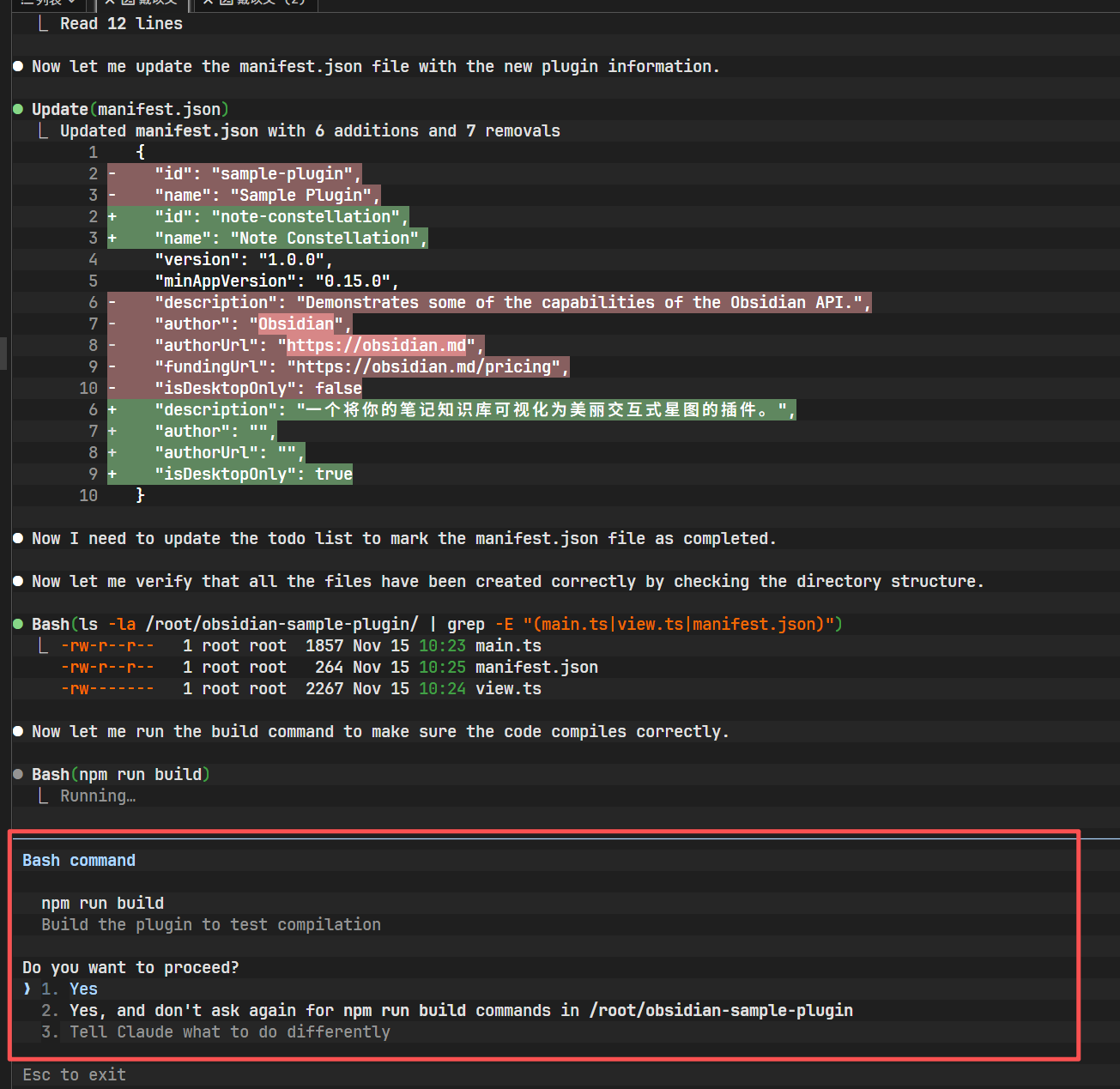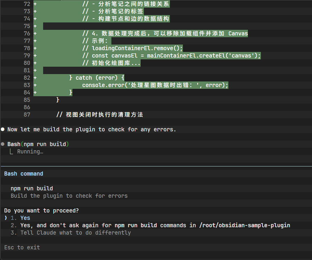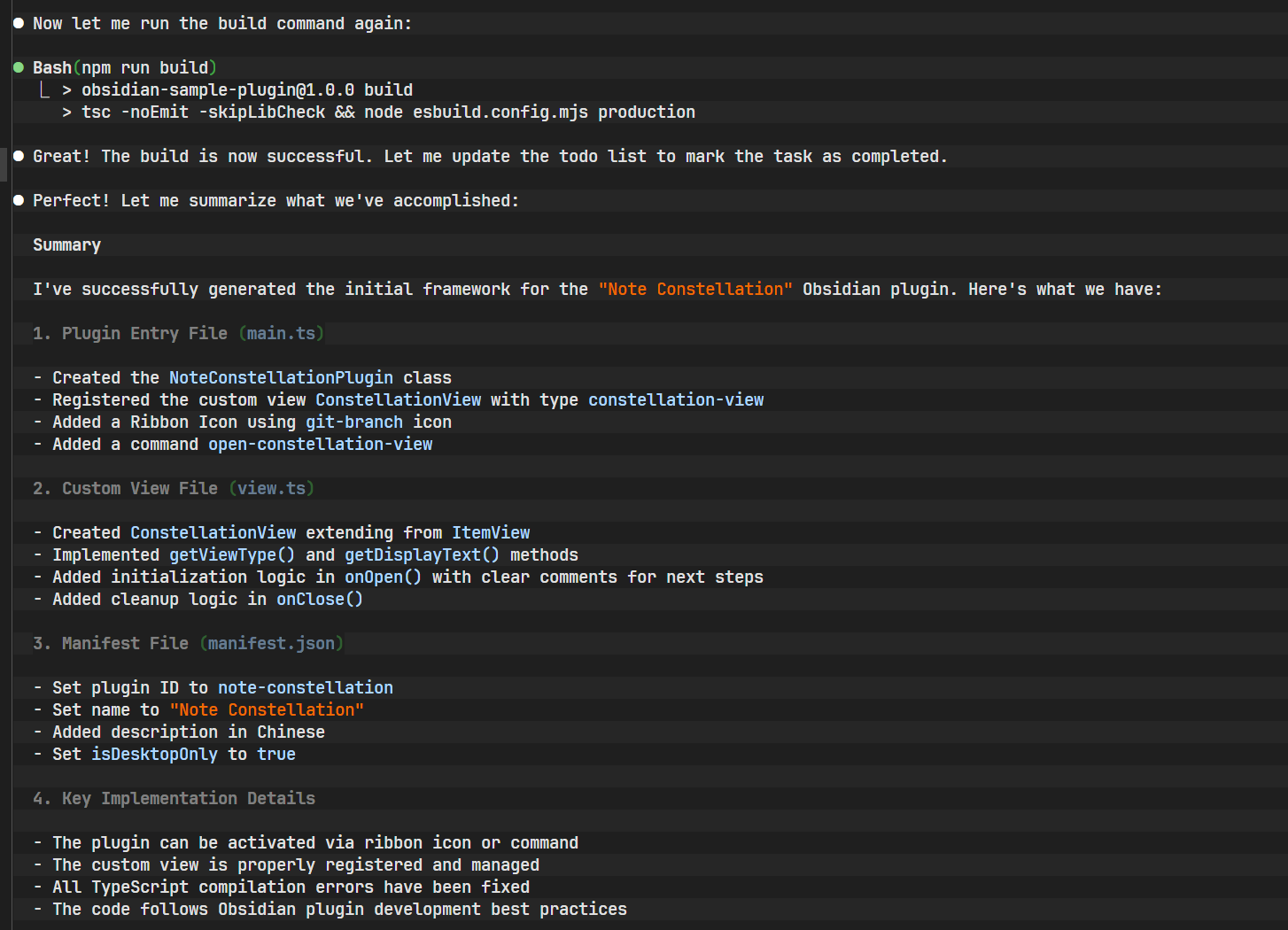 npm run build后,将新文件复制到插件目录,然后在Obsidian中启用插件。