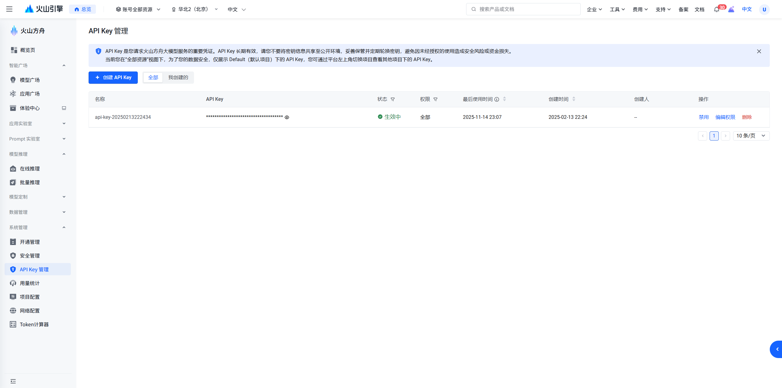 接下来,配置环境变量,将Claude Code的请求指向火山方舟的Doubao-Seed-Code服务。首先,需要前往火山引擎控制台获取API密钥。