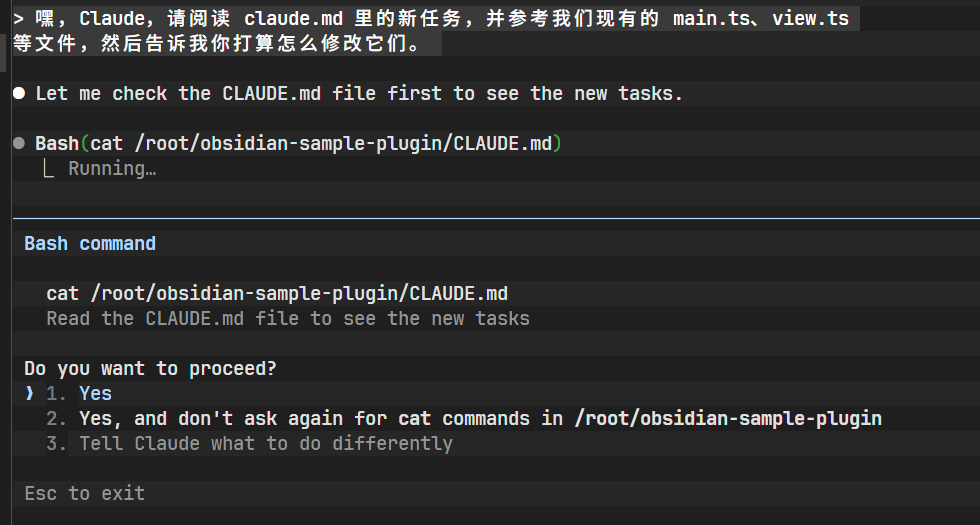 向Claude Code发出指令,让它阅读新任务并提出修改计划。