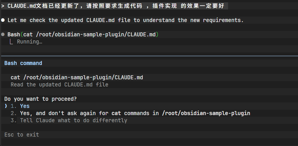Claude Code读取CLAUDE.md后,开始分析并生成代码。