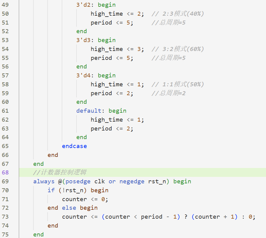 设计要求:占空比分别为1:2,1:3,2:3,3:2和 1:1。