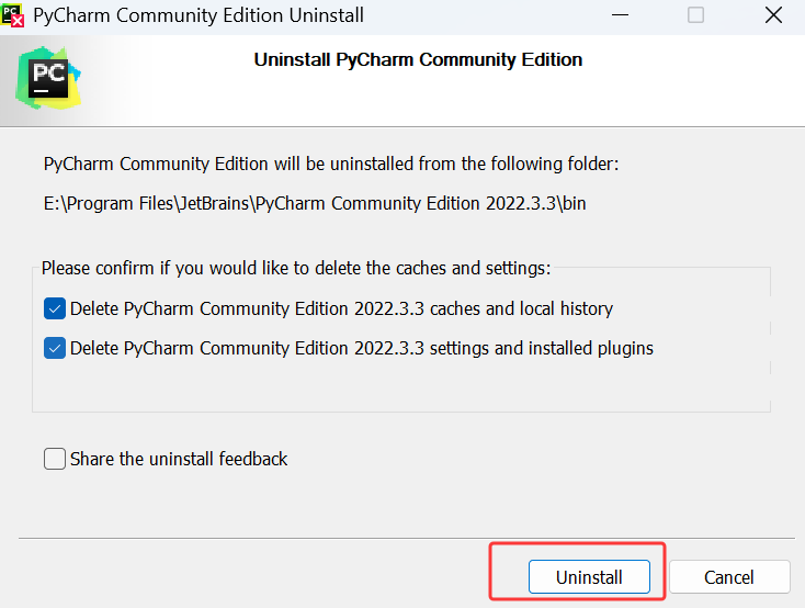 一、找到pycharm的unistall程序,一般在bin文件夹里