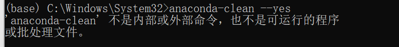 如果不是管理员权限打开的话,会出现**'anaconda-clean' 不是内部或外部命令,也不是可运行的程序或批处理文件。**这样的错误