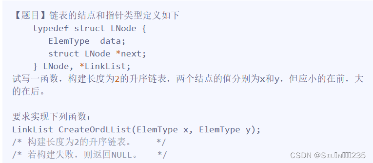 LinkList CreateOrdLList(ElemType x, ElemType y) {