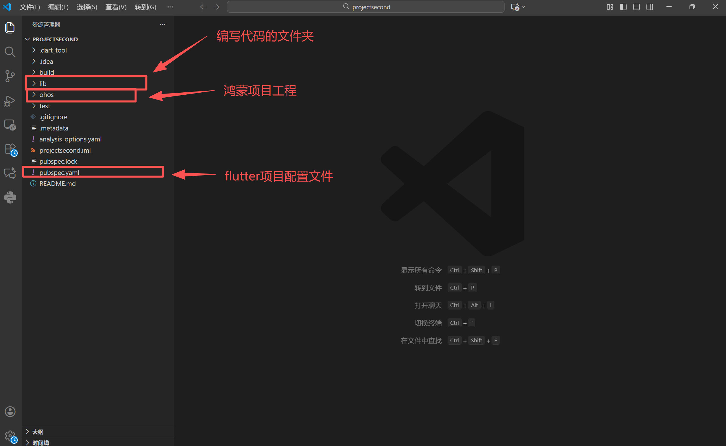 - 而 ohos 文件夹是关于鸿蒙工程项目的文件夹。