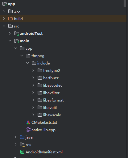 ffmpeg-sources用于保存下载的源代码,我顺便把ndk也放这里了ffmpeg-output/build用于保存编译输出,这里面有so和头文件,但是一般不直接使用这里面的。ffmpeg-output/install用于保存安装输出,在这里面就有so和头文件。