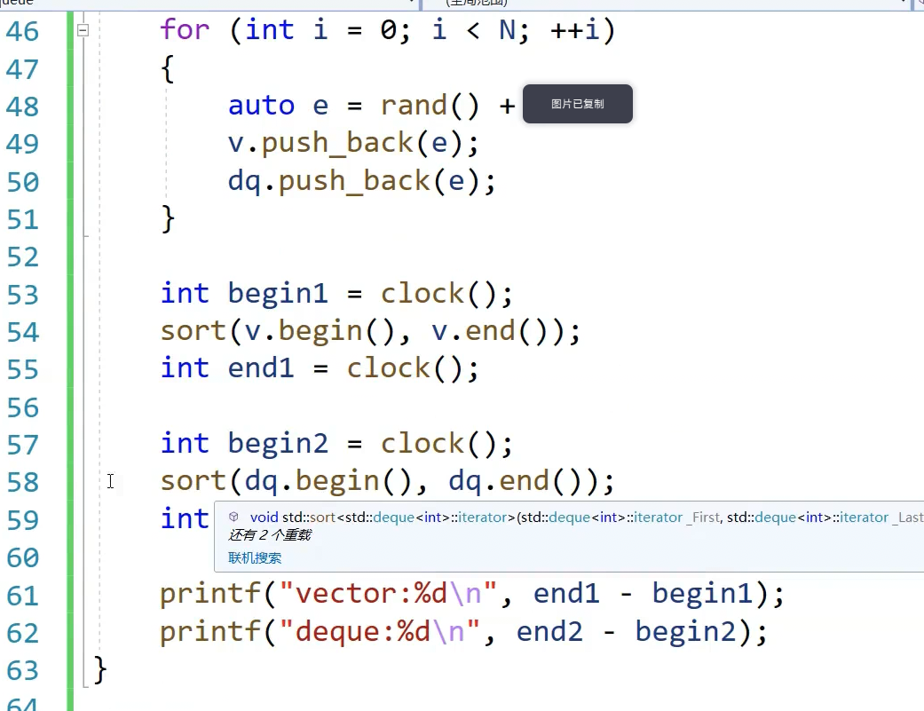 接下来看一下dequeue,把栈和队列第二个模版参数换成deque,虽然没包deque.h,但是没用缺省值,所以也不报错,也是按需实例化。