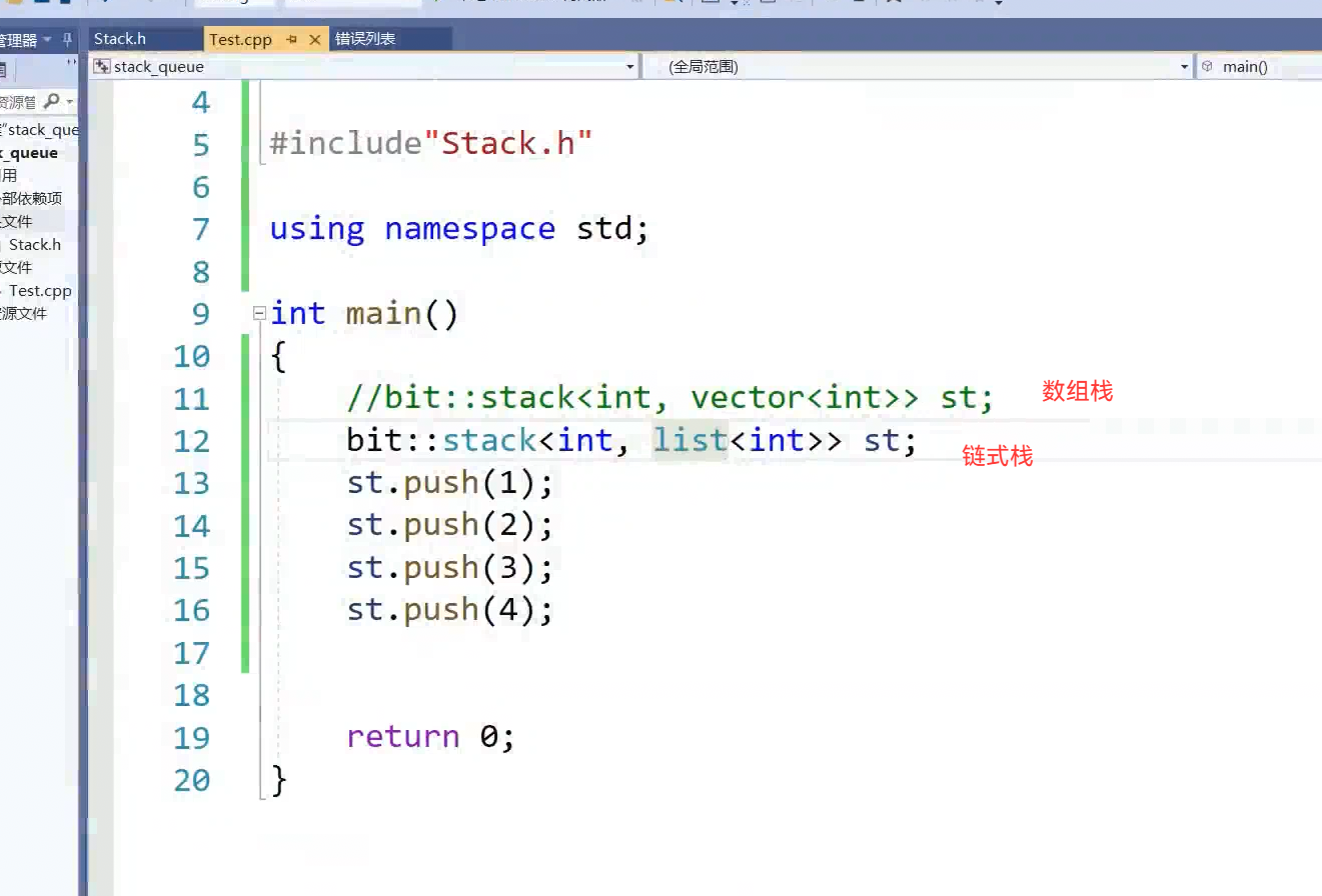 stack.h没有包头文件为什么能用,tect包了,编译器编译时候,预处理所有。h在。c或者。cpp展