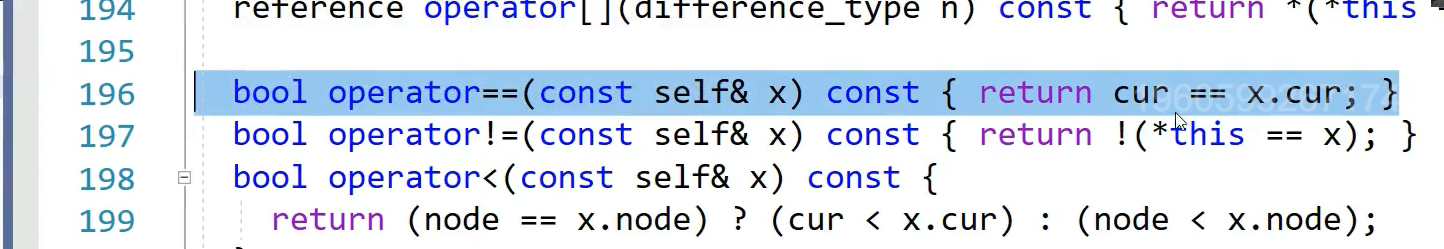 就算两个迭代器指向同一数组,我们用cur比较,不相等就不是==,start就是最开始的迭代器,