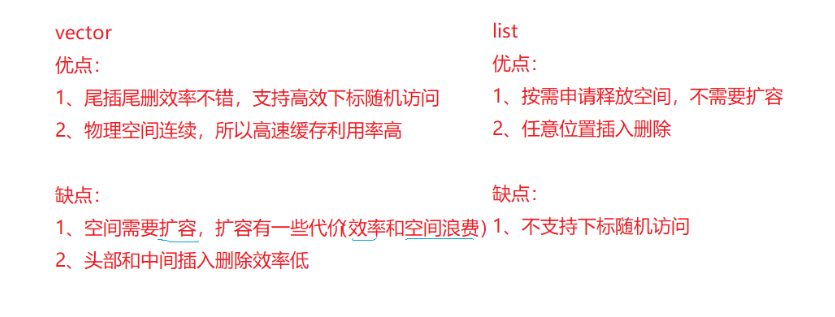 头插尾插效率更高,list扩容太频繁,vector,越到后面扩容越大,要拷贝要释放,buffer满了,新开buffer指针一改放就行,中控数组才开始扩容,只考指针,代价很低,头插尾插效率很高