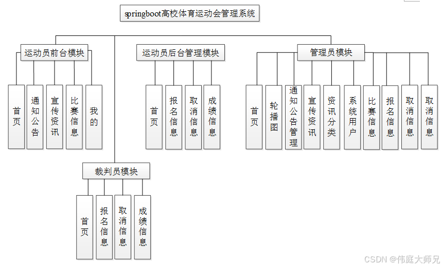 本设计主要实现集人性化、高效率、便捷等优点于一身的高校体育运动会管理系统,完成首页、轮播图、通知公告管理、资源管理(宣传资讯、资讯分类)、系统用户(管理员、运动员、裁判员)、模块管理(比赛信息、报名信息、取消信息、成绩信息)等功能模块。系统通过浏览器与服务器进行通信,实现数据的交互与变更。本系统通过科学的管理方式、便捷的服务提高了工作效率,减少了数据存储上的错误和遗漏。高校体育运动会管理系统使用Java语言,采用基于 MVVM模式的springboot技术进行开发,使用 Eclipse 2017 CI 10 编译器编写,数据方面主要采用的是微软的MySQL关系型数据库来作为数据存储媒介,配合前台HTML+CSS 技术完成系统的开发。