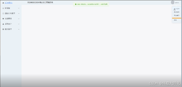 首页,系统呈现出一种简洁大方的首页:界面简约、鳞次栉比,用户能轻车熟路的使用。出于对系统使用群体广泛的顾虑,应有良好性能的后台,如下图所示。
