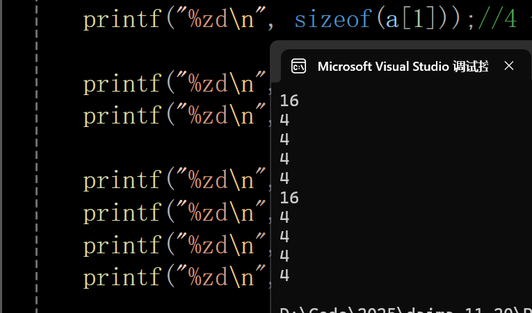 printf("%zd\n", sizeof(a[1]));//4 ---a[1] 就是第二个元素,int是4个字节,所以这里是4