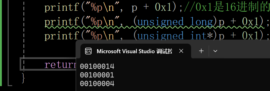 printf("%p\n", (unsigned int*)p + 0x1);//unsigned int*无符号的整型指针,这里的+1相当于+4