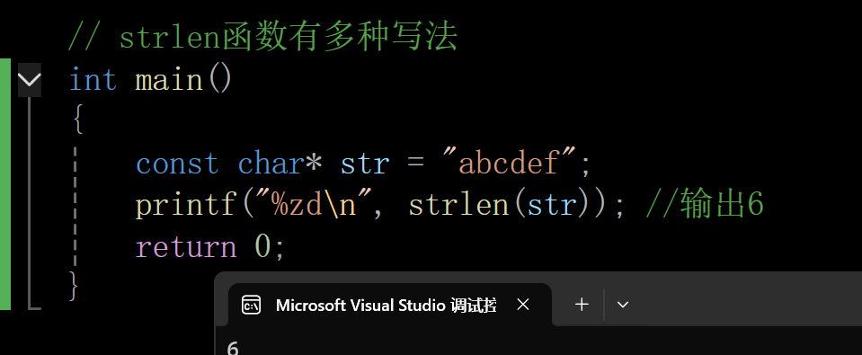 printf("%d\n", strlen(arr + 0));//6 ---arr+0是首元素的地址,往后一直计算到\0之前的数为6个字符
