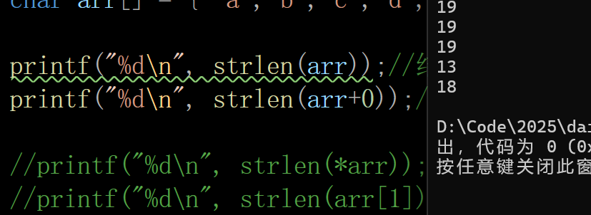 printf("%d\n", strlen(&arr[0]+1));//随机值 ---它是从第二个元素开始往后计算的 , 则值x-1
