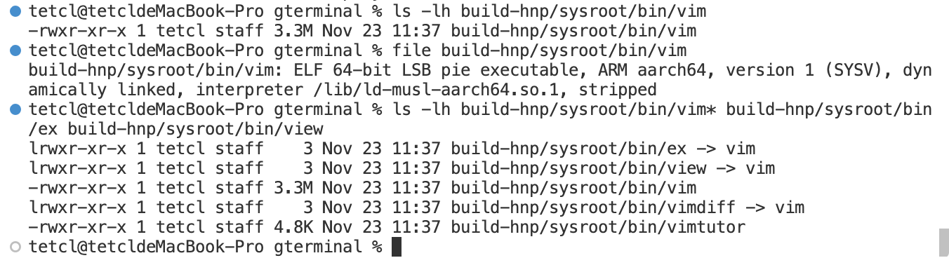 - ✅ 本次已在 aarch64 环境下完成 Vim 9.1.1436 的交叉编译与打包,所有工具和运行时文件已安装到