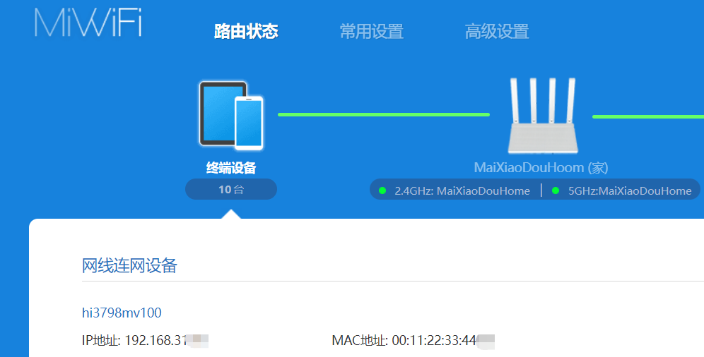 在路由器管理后端,查看接入的设备,可以找到它的地址