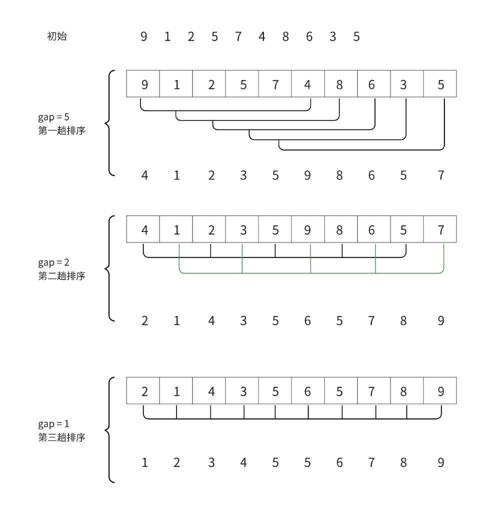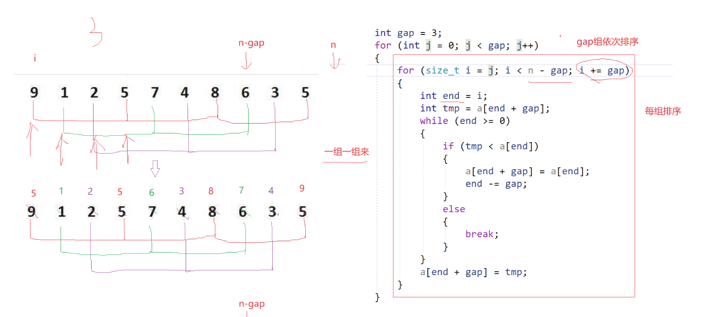 这里相对于直接插入排序,只是把-1的部分换成了-gap