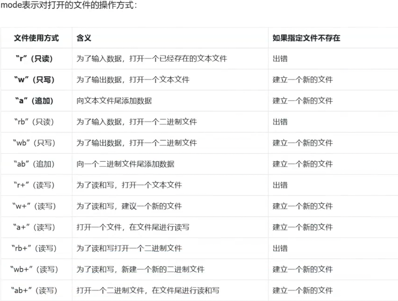 - mode:表示对打开的文件的操作方式,具体见下面的表格。