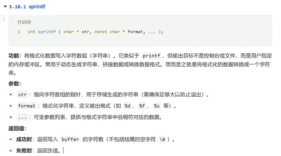 sprintf:将变量、结构体成员等数据,按照指定格式转换成字符串,写入到内存中的字符数组(缓冲区)
