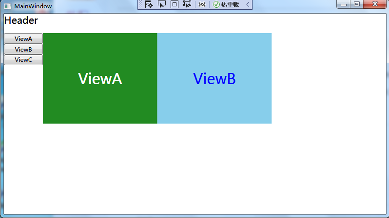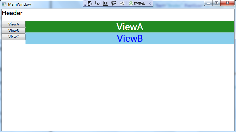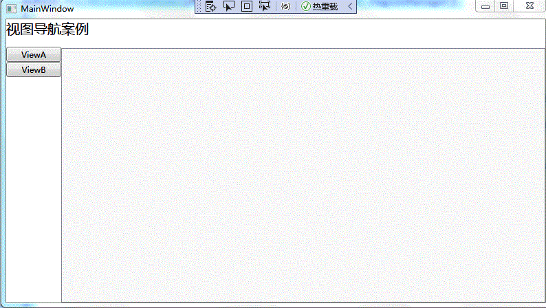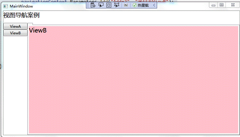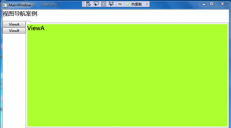 IModule的类Xaml<UserControl x:Class="lzg.PrismModule.ModuleA.ViewA" xmlns="http://schemas.microsoft.com/winfx/2006/xaml/presentation" xmlns:x="http://schemas.microsoft.com/winfx/2006/xaml" xmlns:mc="http://schemas.openxmlformats.org/markup-compatibility/2006" xmlns:d="http://schemas.microsoft.com/expression/blend/2008" xmlns:local="clr-namespace:lzg.PrismModule.ModuleA" mc:Ignorable="d" d:DesignHeight="450" d:DesignWidth="800"> <Grid> <TextBlock FontSize="20" Foreground="Red" Text="{Binding Title}"></TextBlock> </Grid> </UserControl>c#using Prism.Regions; using System; using System.Collections.Generic; using System.Linq; using System.Text; using System.Threading.Tasks; namespace lzg.PrismModule.ModuleA { class ViewAViewModel : Prism.Regions.INavigationAware { public string Title { get; set; } = "ViewA示例"; public bool IsNavigationTarget(NavigationContext navigationContext) { return true; } public void OnNavigatedFrom(NavigationContext navigationContext) { } public void OnNavigatedTo(NavigationContext navigationContext) { } } }注册导航视图