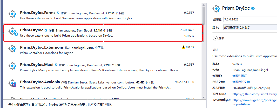 DryIoc:作为Prism 8.0后仅保留的两种容器之一,其集成更轻量,但功能扩展性有限。