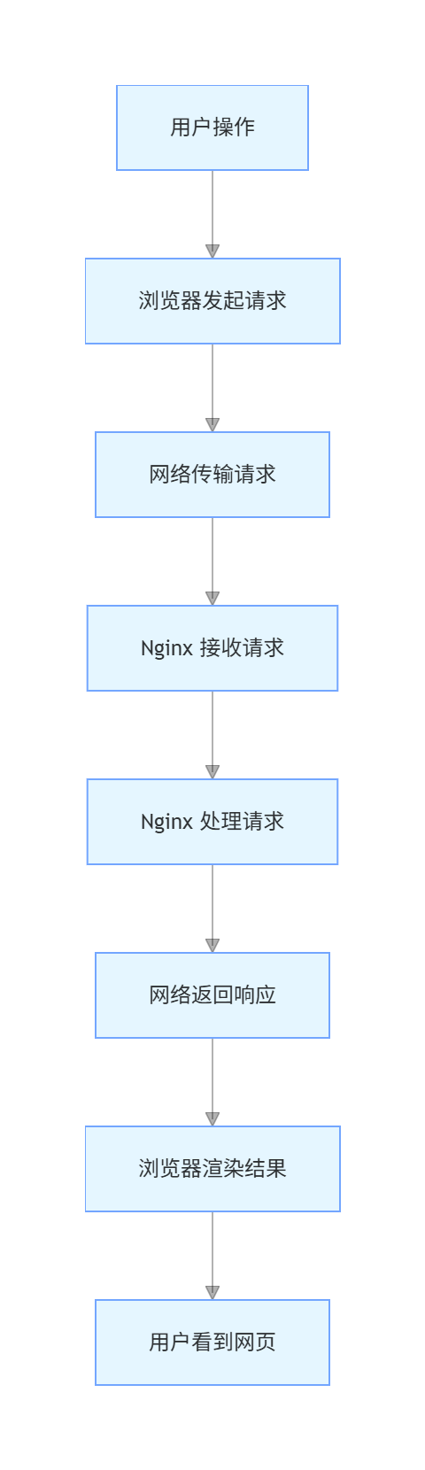 - Nginx 把后端结果包装成 HTTP 响应,返回给浏览器;