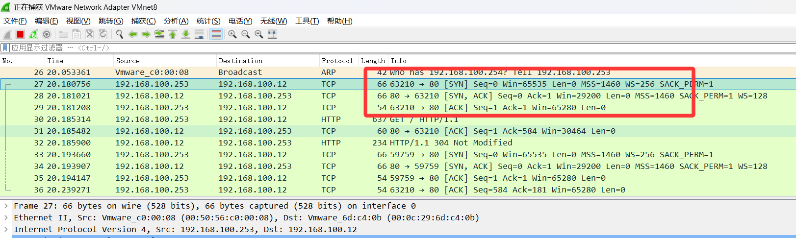 - 目标地址(192.168.1.100 的 80 端口,HTTP 默认端口);