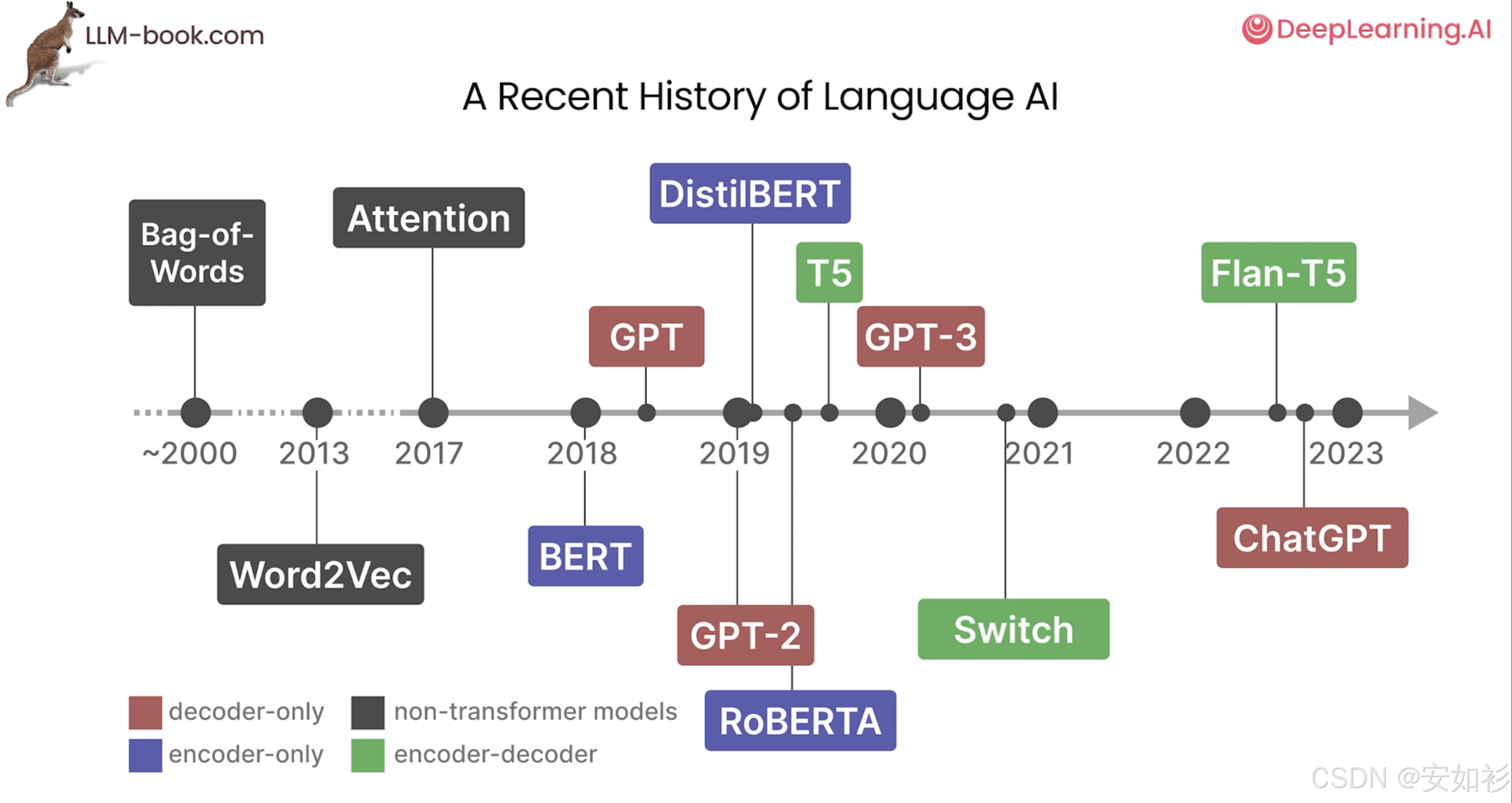这一突破开启了预训练模型的黄金时代。此后,各大科技巨头纷纷基于Transformer架构进行创新:Google 于2018年推出了里程碑式的BERT模型,其双向编码器结构在自然语言理解任务上表现卓越;OpenAI 则选择了 仅解码器(Decoder-only) 的路线,于2018年发布GPT-1,并在此基础上不断迭代。