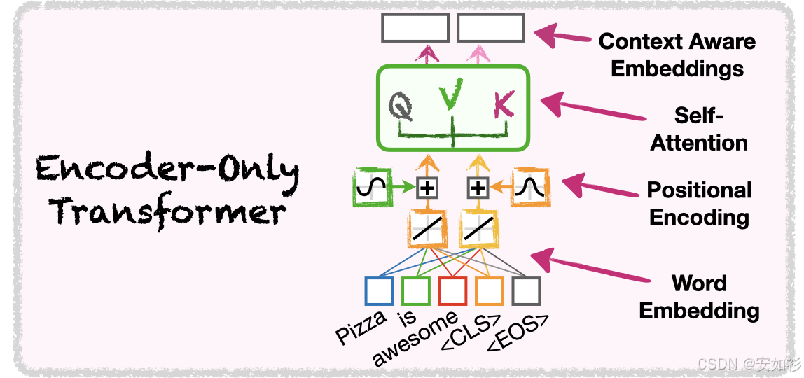 - 单词排列顺序也很重要,因此有 Positional Encoding;