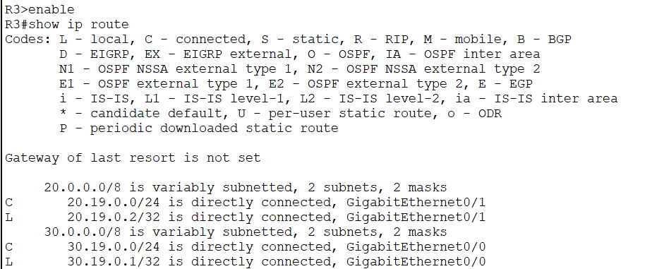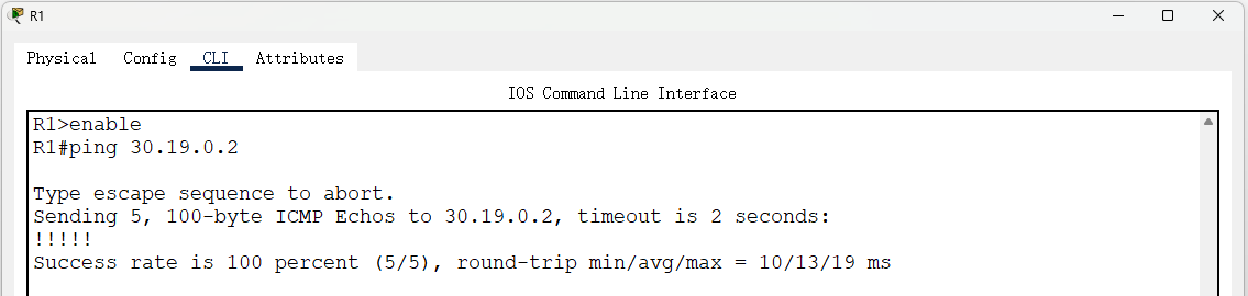 R3(config-if)#ip address 30.19.0.1 255.255.255.0 # 配置接口IP