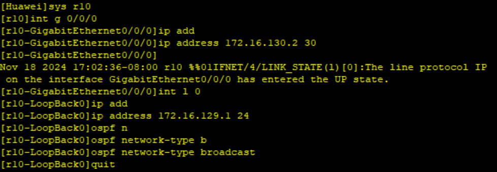 [r10-ospf-1-area-0.0.0.4]network 172.16.129.1 0.0.0.0